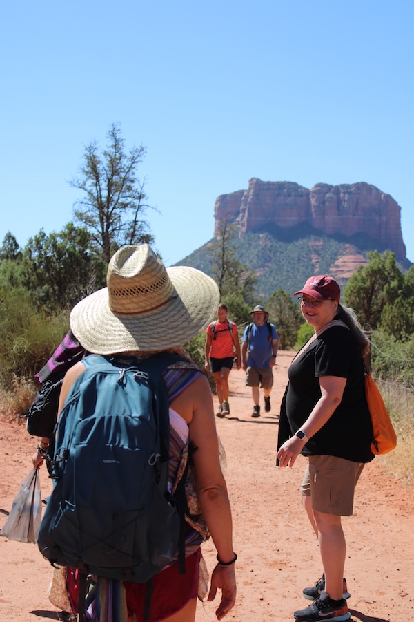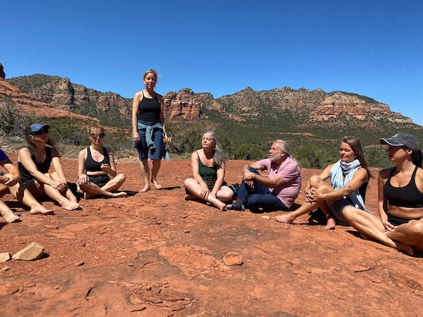 We take it outside. Hiking through the ancient Sangre de Cristo landscape, red earth beneath your feet, the sky enormous above — this land has held prayer for a thousand years and you will feel every bit of it.